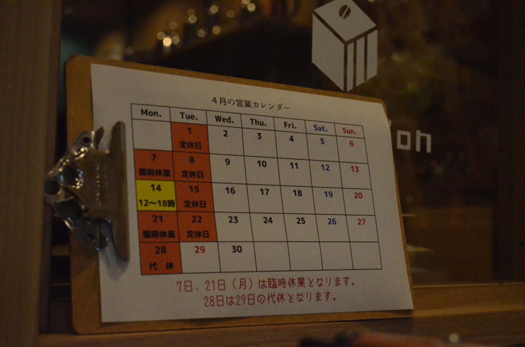 今月の営業についてですが、GWが絡みますので、複雑になっています。