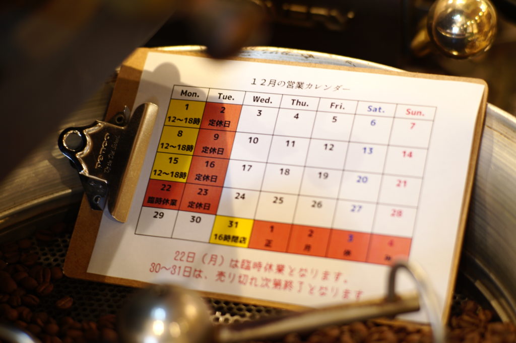 今年もカレンダー的には大きめの連休になるかと思いますので、コーヒー豆の確保は30日までにしていただくのが無難かと思います。